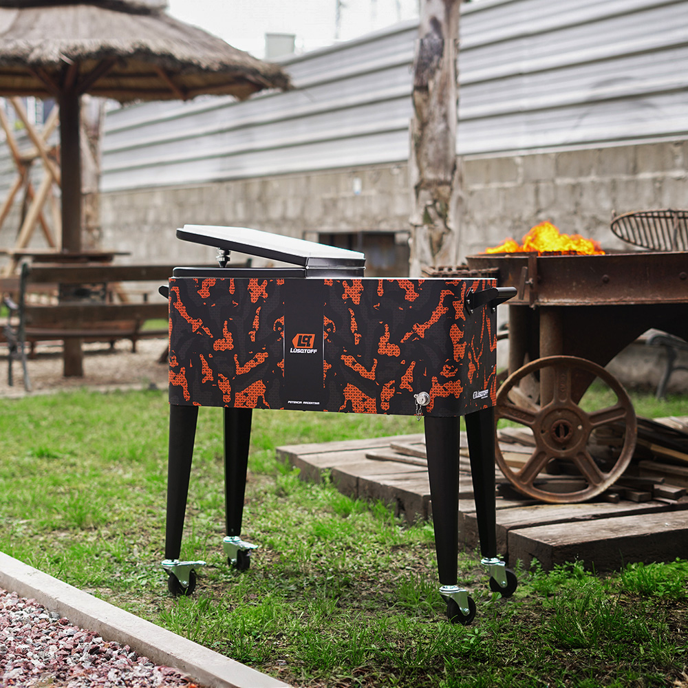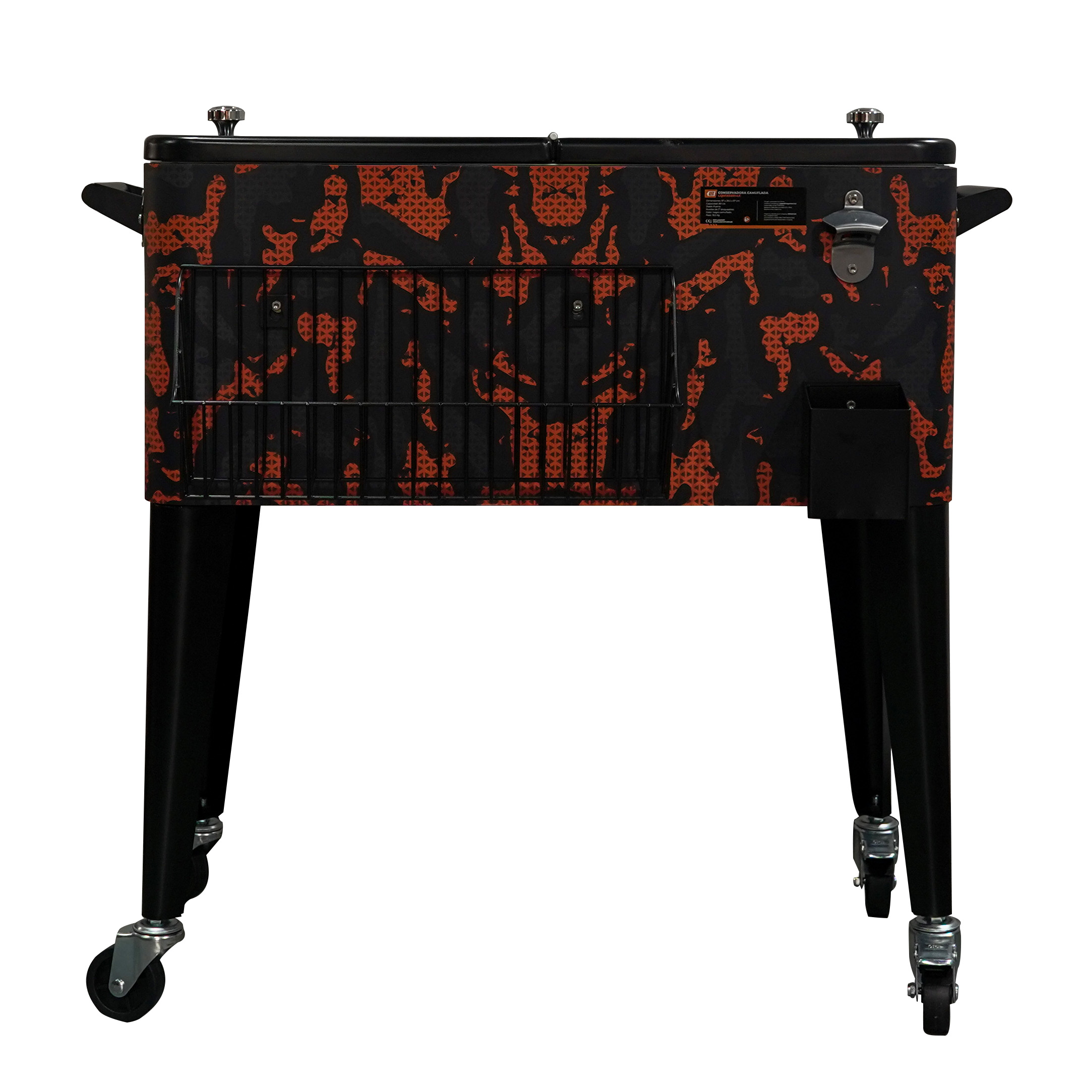 • Capacidad: 80 lts.• Material: acero inoxidable• Dimensiones: 87x38.5x87 cm.• Color: negro camuflado• Accesorios: patas desmontable, ruedas bloqueables• Peso: 18,5 kg.